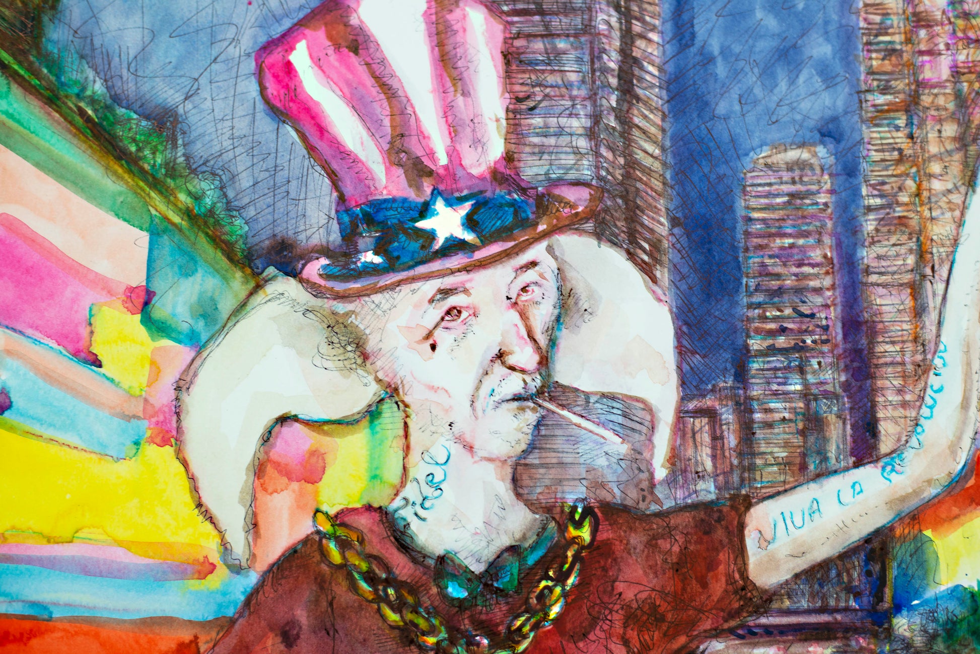 American Dream Circus - Original Watercolor & Ink Drawing