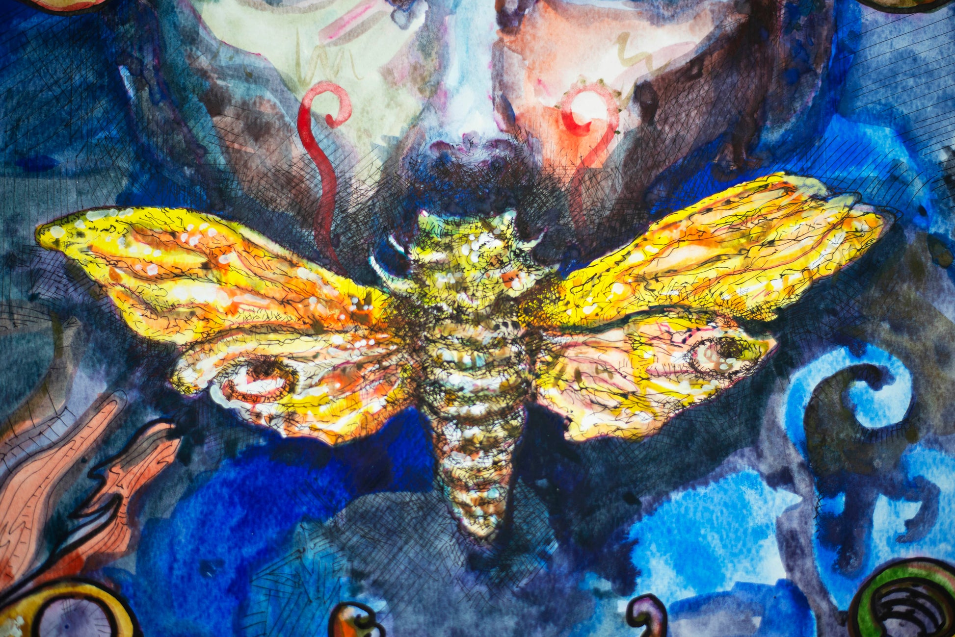 The Silence of Moths: Mystical Guardian - Original Watercolor
