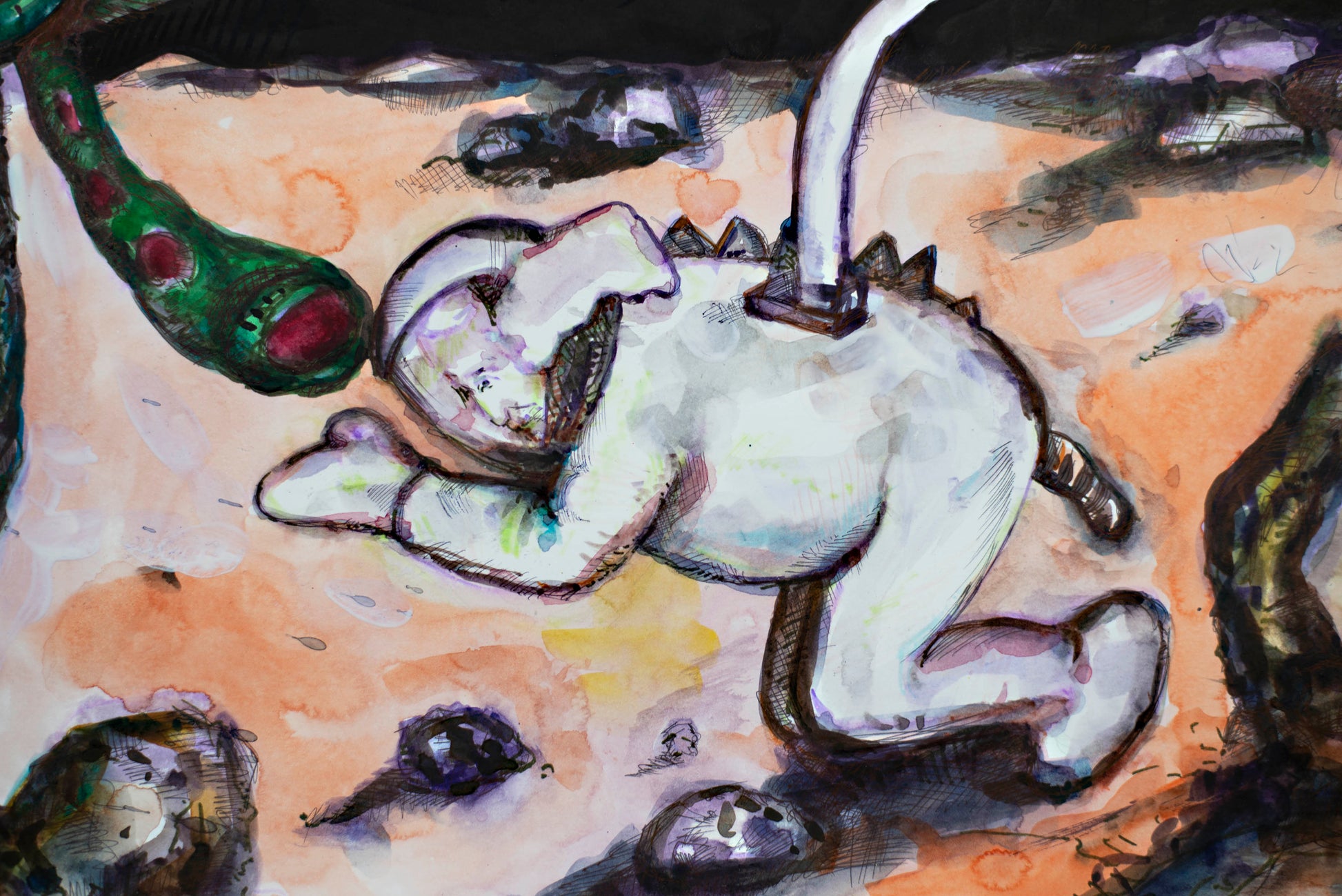 - Medium: Watercolor and ink on paper
